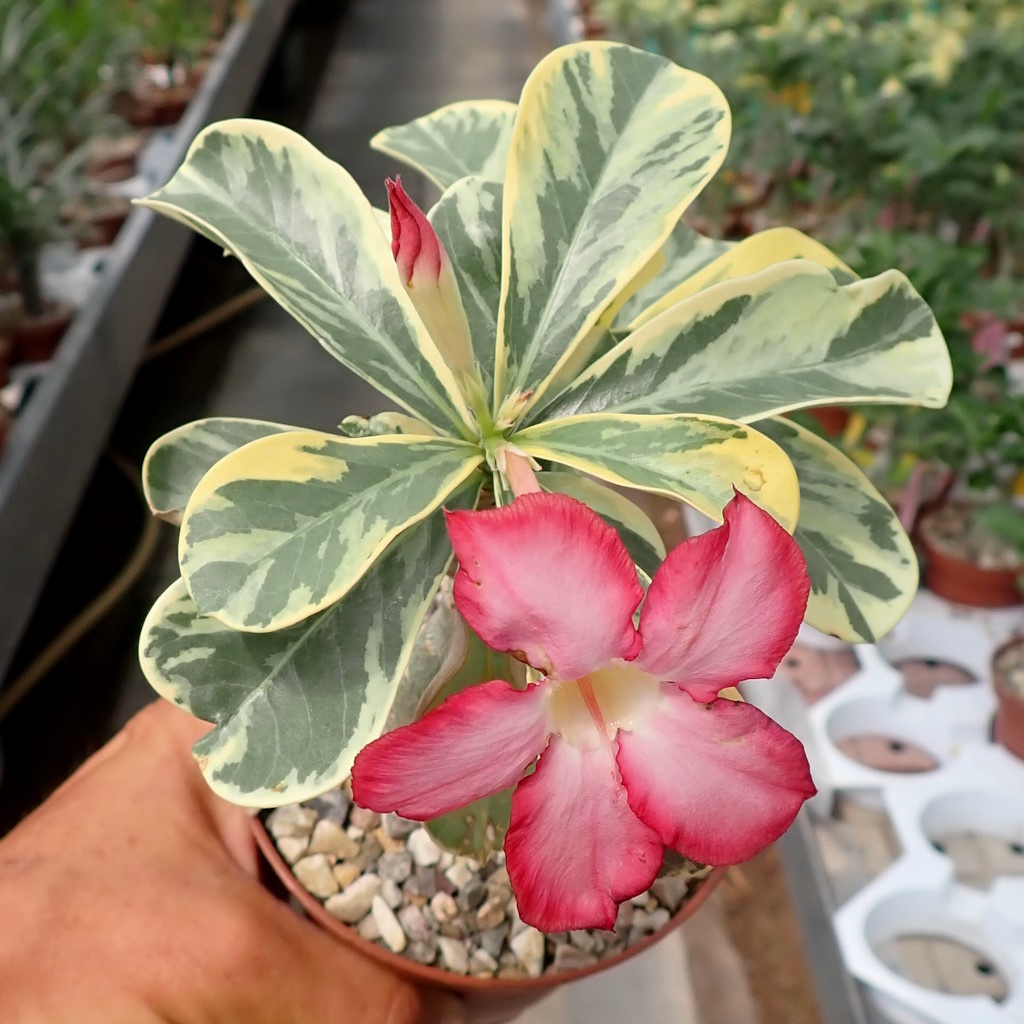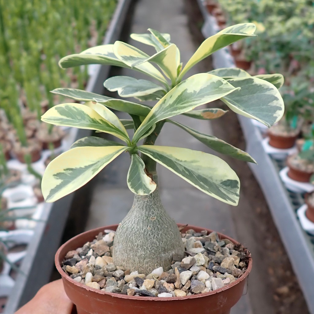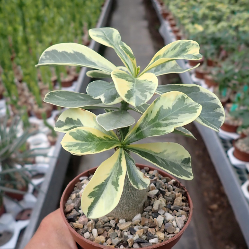 Super Pflanze,sehr schön gezeichnete Blätter,schöner Caudex,top eingepflanzt in hochwertiger Adeniumerde.Ich bin als Wüstenrosen Liebhaber mehr als begeistert.Es wird nicht die letzte Pflanze sein.