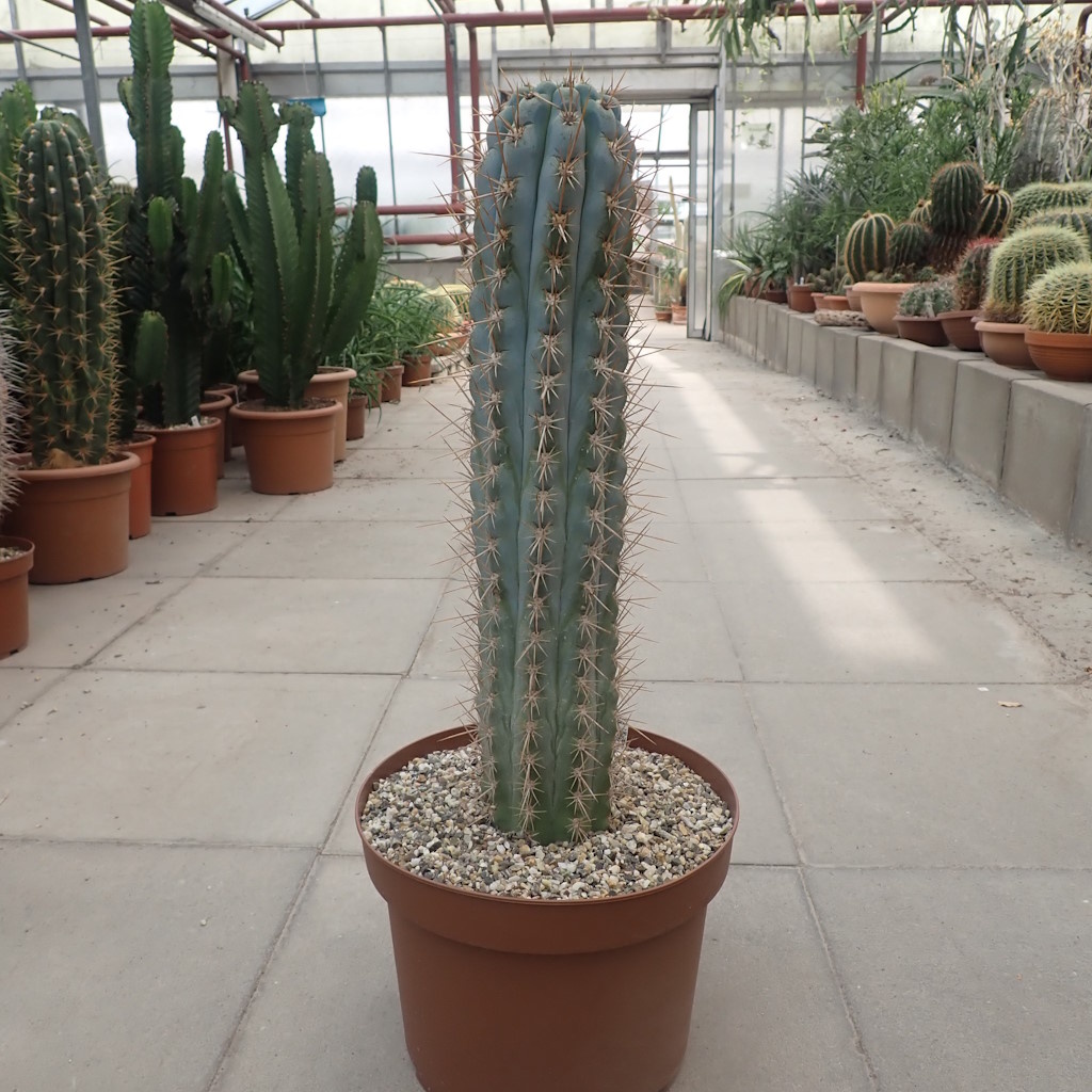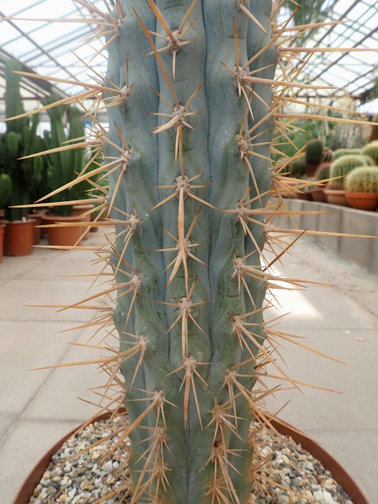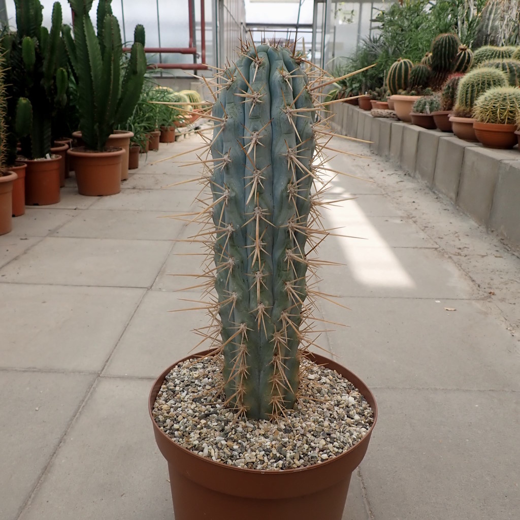 | Characteristics: | Aufrecht wachsende, säulenförmige Triebe mit leuchtend türkisfarbener bis olivgrüner Färbung, bedeckt von gelblich-grauen, kräftigen Dornen, die bis zu 8 cm lang werden können. |